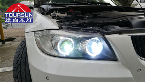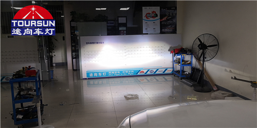 該車主此前就在途向車燈升級過車燈,當時只改近光位置,遠光沒有改動。但該車主對車燈亮度的追求是無止境的,還想更加亮。最后決定再來途向車燈加裝遠光位,實現4透鏡。因當天到店車位已滿,只能到店外車位,所以無法拍到改前遠近光調光墻效果圖,那就讓我們大致的看看改裝的情況吧!