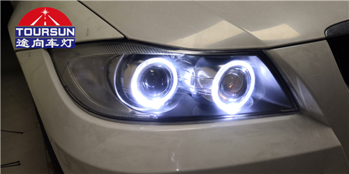 四、改裝后車燈整體效果:因為近期下雨,車主燈罩有點蒙塵,我們讓師傅進行了清潔,改裝后我們可以明顯看到,車燈光線之前更柔和,光線分布更均勻,清澈。
