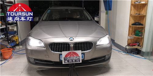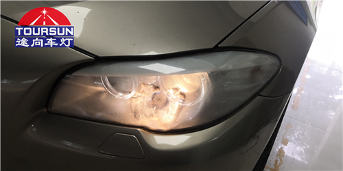 整車改裝前的整體情況:整車寶馬5系的車型外觀簡約大方、線條順暢又不失凌厲,但是因為車燈透鏡進水、內起水霧,打出光照薄弱黯淡,將車體襯得及其“無神”。