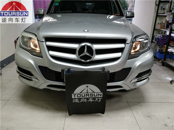 該車主剛提奔馳GLA200不久就對低配車燈很不滿意,大燈配置近光和遠光燈都是鹵素燈,也沒有日行燈,配不上奔馳GLA200的動感。在經過多方了解后決定把車燈全換新原廠大燈總成。