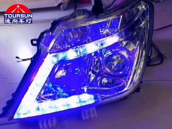 綜合以上情況,途向的技術人員為這款車燈加上了常用的日行燈,日行燈加上車燈原有的光照,一定會讓客戶覺得滿意。以下是車燈升級之后的情況展示: