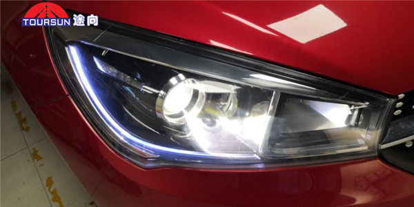 車燈改裝后整體情況:車燈改裝后,我們明顯可以看到車燈亮度有所提高,清潔了燈罩后通透度上升。明亮的車燈讓紅色的車身更耀眼,完全激發了紅色的熱情與奔放。