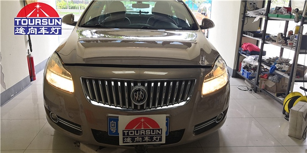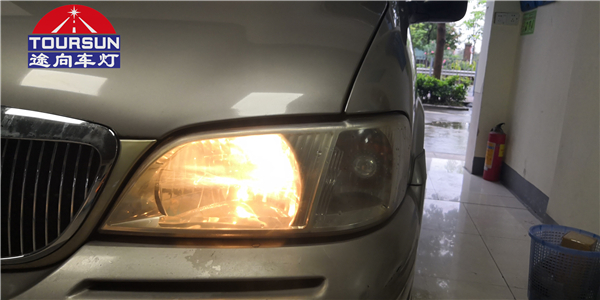 這里插播一下:此前,車主傾向改裝原車總成,但是原車總成是鹵素燈泡,在氙氣燈與led車燈盛行的今天就算更換總成后,燈光受到其他車燈的影響也很暗,且從使用壽命與老化周期來看并不經濟。在檢測車燈后車主選擇了升級明亮套餐,配件有來途海拉五雙光透鏡+漢雷5500K+邁斯安定器。下面我們來看下該車升級前后對比。