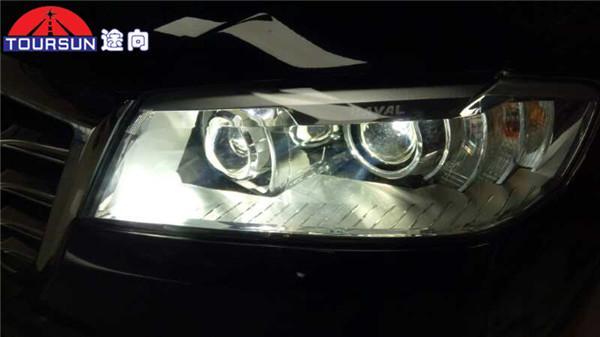 車燈改裝后整體效果:相對之前車燈亮度有所提高,因為車燈色溫提高,光線整體顏色與升級有所差別。