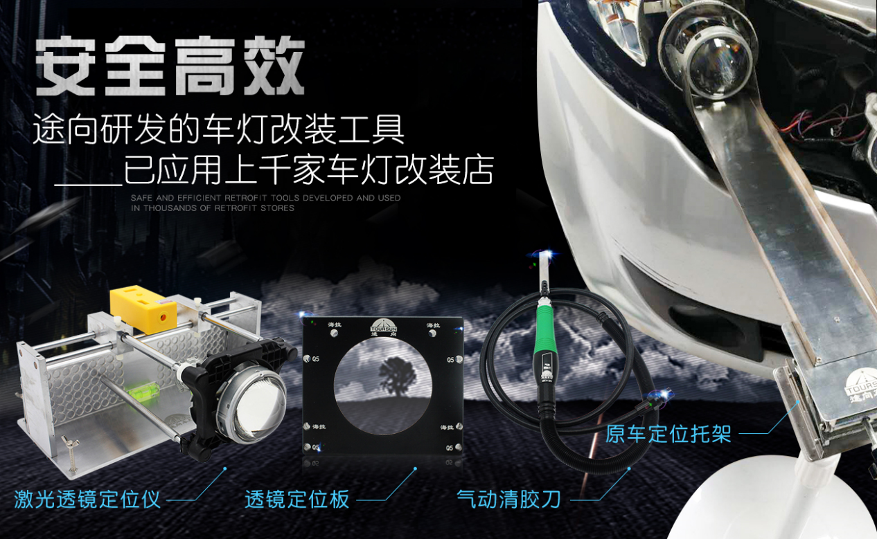 一直以來,途向車燈非常注重改燈工藝改良,是把車燈改裝安全放首位的一家車燈升級店。因此,從安全的角度出發(fā),途向車燈在改燈實踐中研發(fā)了高效安全的改燈工具,目前工具和方法已服務國內(nèi)外上千家車燈改裝店。工欲善其事,必先利其器,途向車燈運用自主研發(fā)的工具進行的車燈升級,讓改燈質(zhì)量更加穩(wěn)定,工藝更加完美。