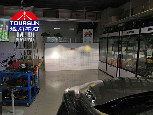 車燈升級后的近遠光情況:光射出時光影的分界線明顯,光型分布均勻,光暈鋪開明顯;遠光射出通透明亮,光束集中且光束長,光暈鋪開均勻不刺眼,擴寬了光照范圍,鋪路程度好。